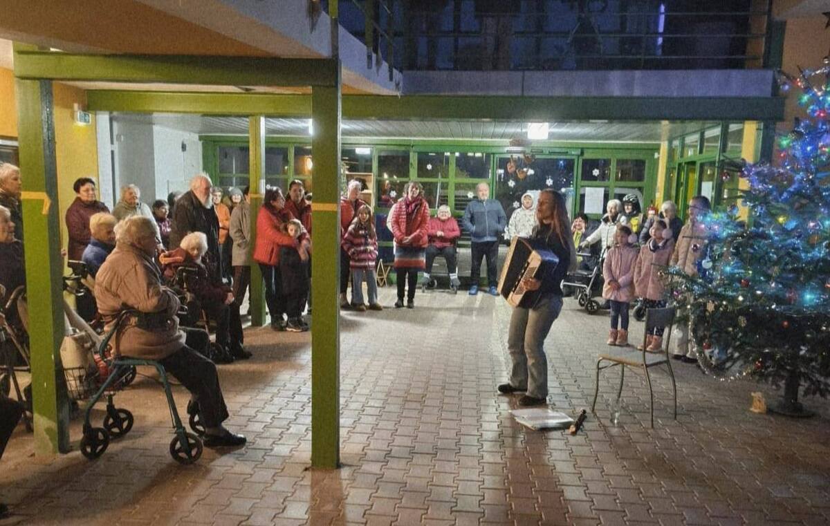 Charitní pečovatelská služba připravila pro obyvatele penzionu v Lánech společné zpívání a rozsvícení vánočního stromku.